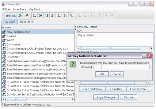 Open the PStore Tool by typing the following command in the CMD window: %WASP_HOME%\bin\PStoreTool.bat --gui