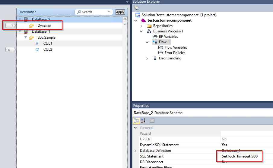 To overcome this, the LOCK TIMEOUT has to be set manually in the Data Mapper. It can be set by adding the Dynamic SQL Statement in the source. The Dynamic SQL Statement should be set as: Set lock_timeout <Value in milliseconds>