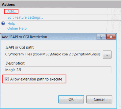 In most installation configurations, IIS is configured when Magic xpa is installed. If IIS was not configured, see Configuring IIS 7 to Work with Magic xpa.