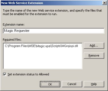 When you are done, you will see the Magic requesters listed under the Web Service Extensions, with the Status “allowed”.