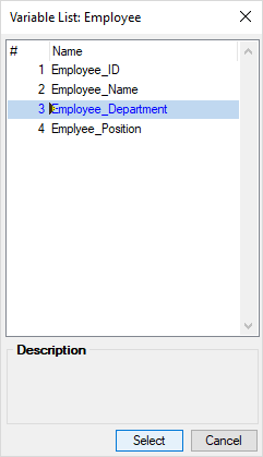 11. Select Column from the options Column/Variable. (You can select Column from Table or Variable from Main program.)
