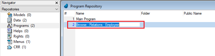 21. See Programs Repository. You get to see the program Browse – Relations – Employee at the end of the list of programs.
