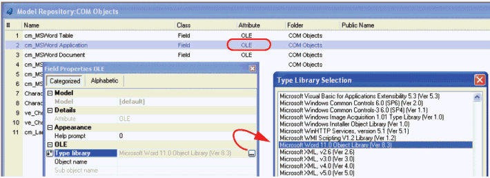 From the Type Library property, zoom to select the library you want to use. The library list can be very large; all the libraries installed on your computer are listed. You can type the first letter to get to the section you want. Press Enter to select the library you want to use.