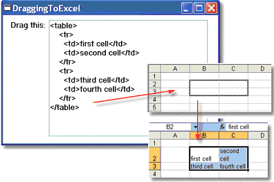 When you drag data from Magic xpa into Excel, Excel will try to figure out the format and use it accordingly. In this example, we formatted some table data using HTML format, and just dragged the text into Excel. Excel figured out that we meant to have a 4-cell table and dropped the data accordingly.