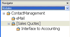 In the example below, Contact Management has 3 modules. You can tell that Sales Quotes is what is currently open, because the folder icon is open and it has brackets around it. Each module represents a Magic xpa project, and they can be located anywhere.