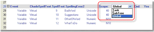 Create an event that responds to any COM object of a specific type. In this example, we have a global handler for a spelling error, using a 3rd party spell-checking tool.