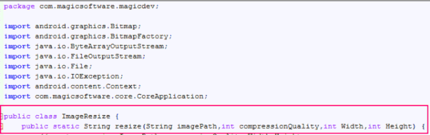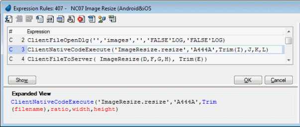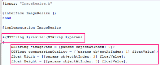 So, for example, in the image below, the ClientNativeCodeExecute() function will execute the resize method in the ImageResize class in the mobile application code and pass it the arguments of filename, ratio, width and height.
