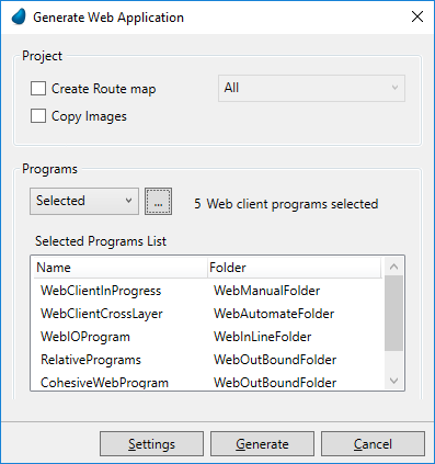 Click on Generate Web Application. This opens Generate Web Application dialog box as shown below: