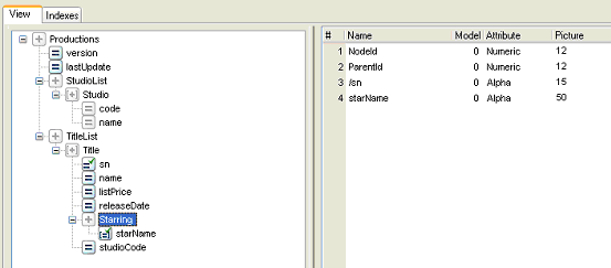 On this XML view, we also create an index so we can access the elements by “sn”.