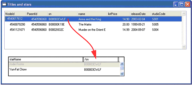 We create task that displays the parent element, Title. In this task we select the /sn field. We pass the /sn field as a parameter to the subtask.