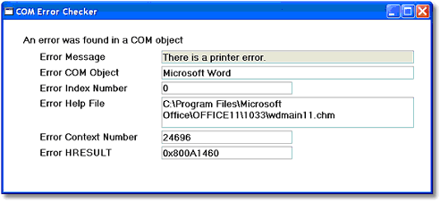 You can capture errors generated by a COM object by using the Magic xpa COMError() function. COMError returns the last COM generated error. The syntax is: