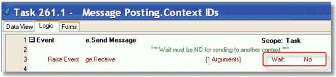 However, if this task also needed to send data back to the sending program, then it would have to know the context name of the sending program, to reverse the process. This could be done by simply using an additional parameter in the event, which would contain the context name of the sender.