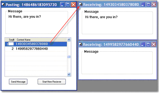 What happens in the other context is that the event gets raised, and it does the appropriate processing. The receiving task doesn’t know the origin of the event that sent the data, nor does it need to. The message arrives and is displayed.