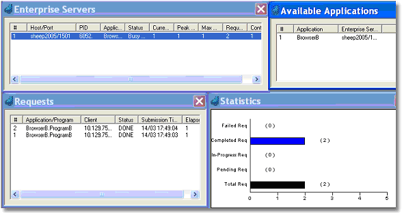 The Broker Monitor, shown above, provides a visual, real-time display of what the Broker is doing.