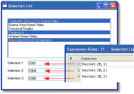 Now, you can access the items in the vector, when they are selected, by using the VecGet() function.