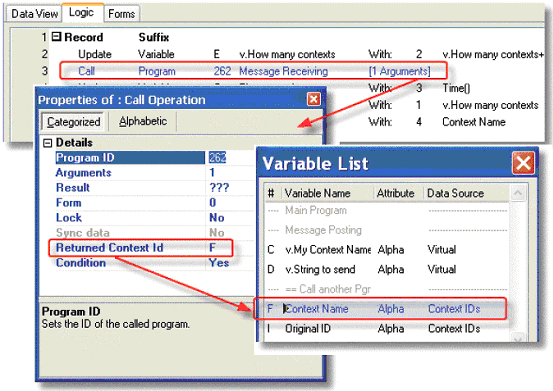 Now, after the program is called, the variable will contain the Context Id value.