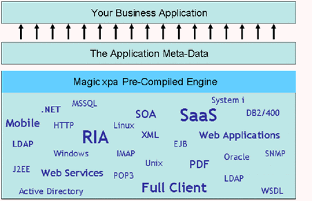 Being pre-compiled and metadata driven, the Magic xpa server engine serves as a virtual machine, enabling the implementation of the application on various server machines without making any modification to the application metadata. The virtual machine keeps a clear separation between the specific environment definitions and the application business logic, enabling customization for new deployments.