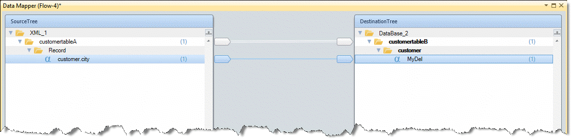 | The phone_desc element in the Destination schema is connected to itself. This means that the value entered at runtime is retrieved from a calculated expression. |